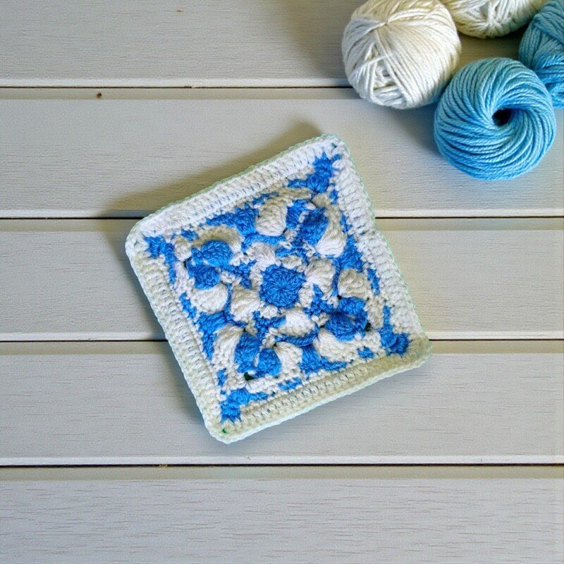 This mosaic granny square is a cute crochet pattern inspired by azulejos Aveiro and classic Portuguese tile designs .
