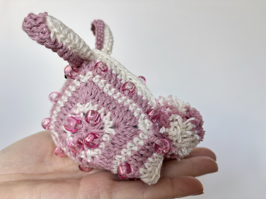 This Easter Bunny crochet pattern combines classic granny square crochet with an elegant, playful technique: beads are worked directly into the stitches, creating a beautiful texture and a satisfying tactile experience. Perfect for handmade Easter decor, gifts, or small crochet keepsakes.
