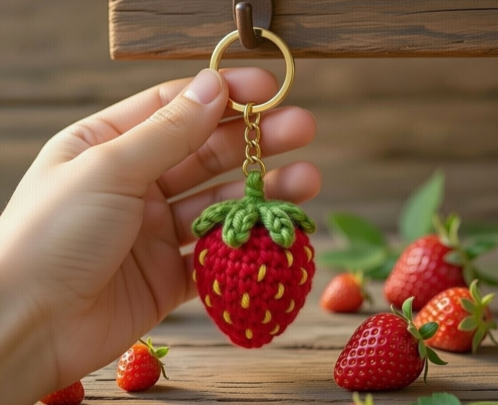 Create your own cute crochet strawberry keychain with this detailed PDF pattern!