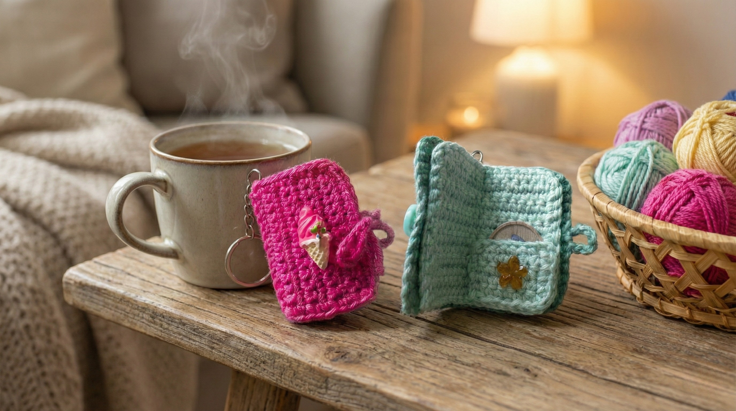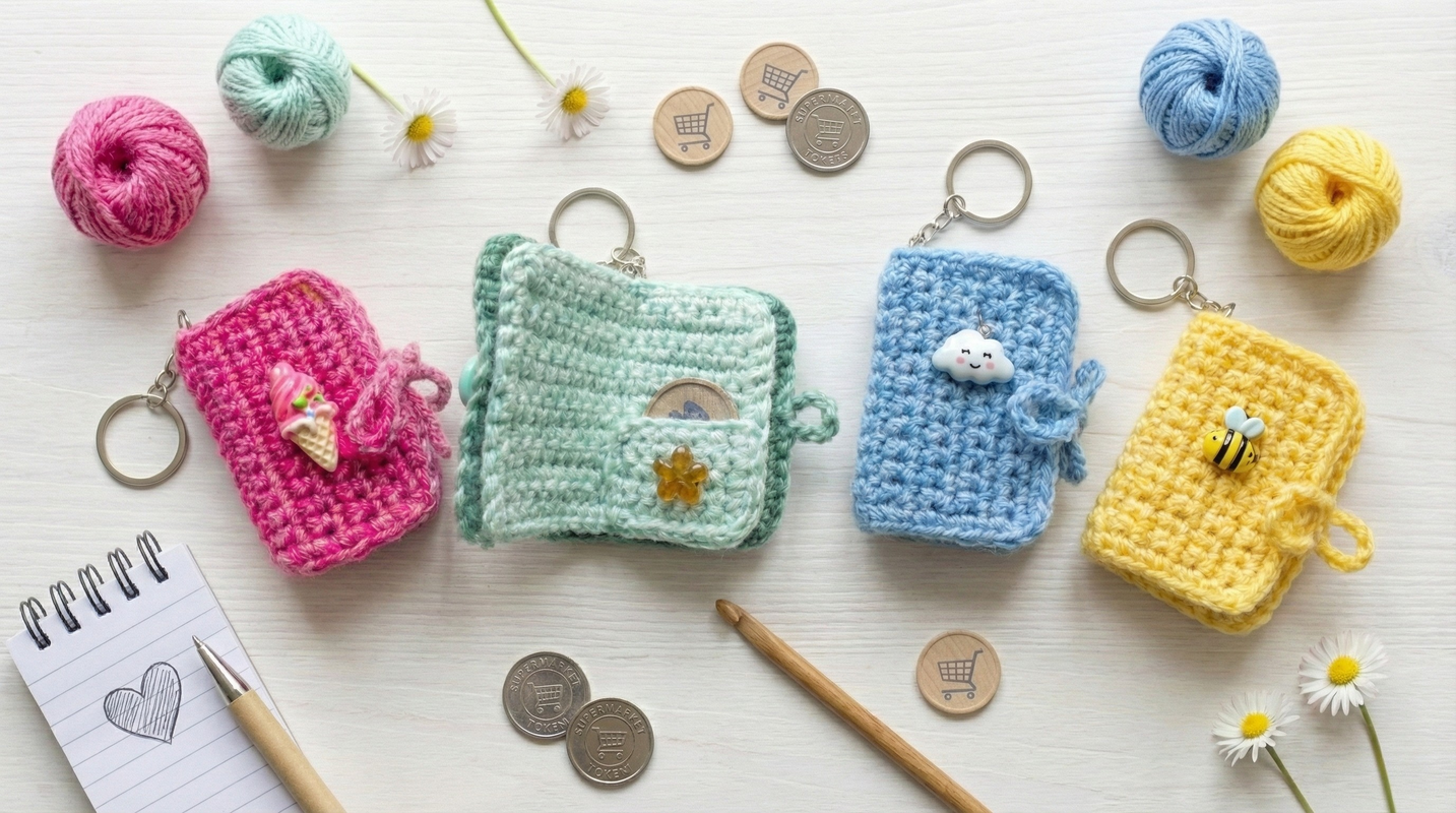 Create a magical accessory with this "Handmade with Love" pattern! This mini book serves as a charming keychain with a functional inner pocket. It's designed to hold a shopping token or a tiny love note. A delightful gift for book lovers and crafters alike.