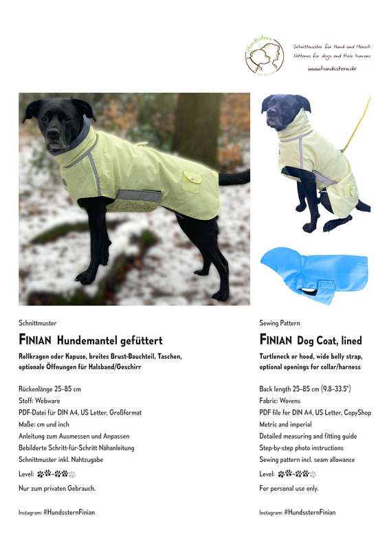 This versatile sewing pattern gives you a lot of creative freedom: six adjustable sizes, your choice of a cozy turtleneck or hood, and plenty of smart add‑ons - from leash openings and pockets to drawstrings, tail cut‑outs, and leg elastics.