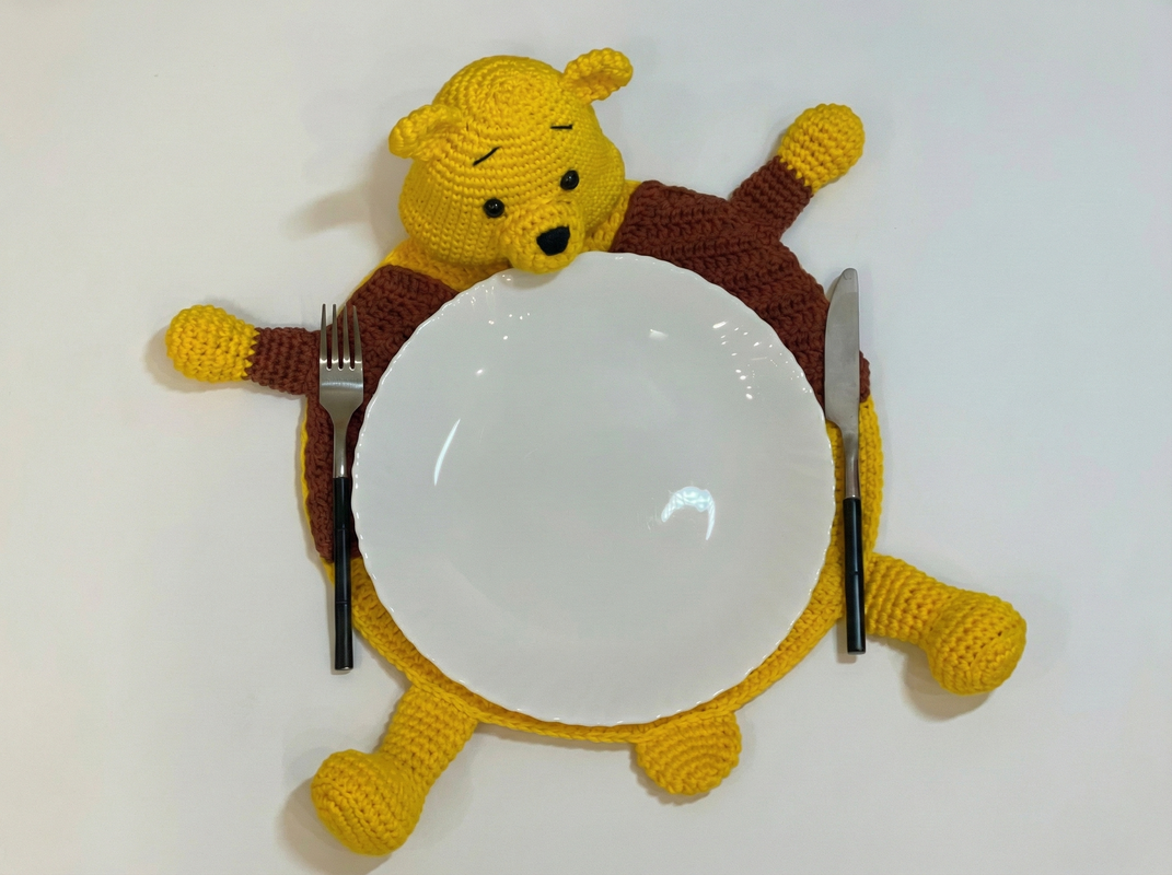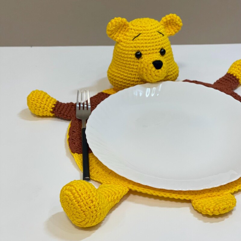 Whether you’re creating a fun addition to family meals, a unique handmade gift, or simply love whimsical crochet, this Pooh Bear placemat will bring smiles to everyone at the table.