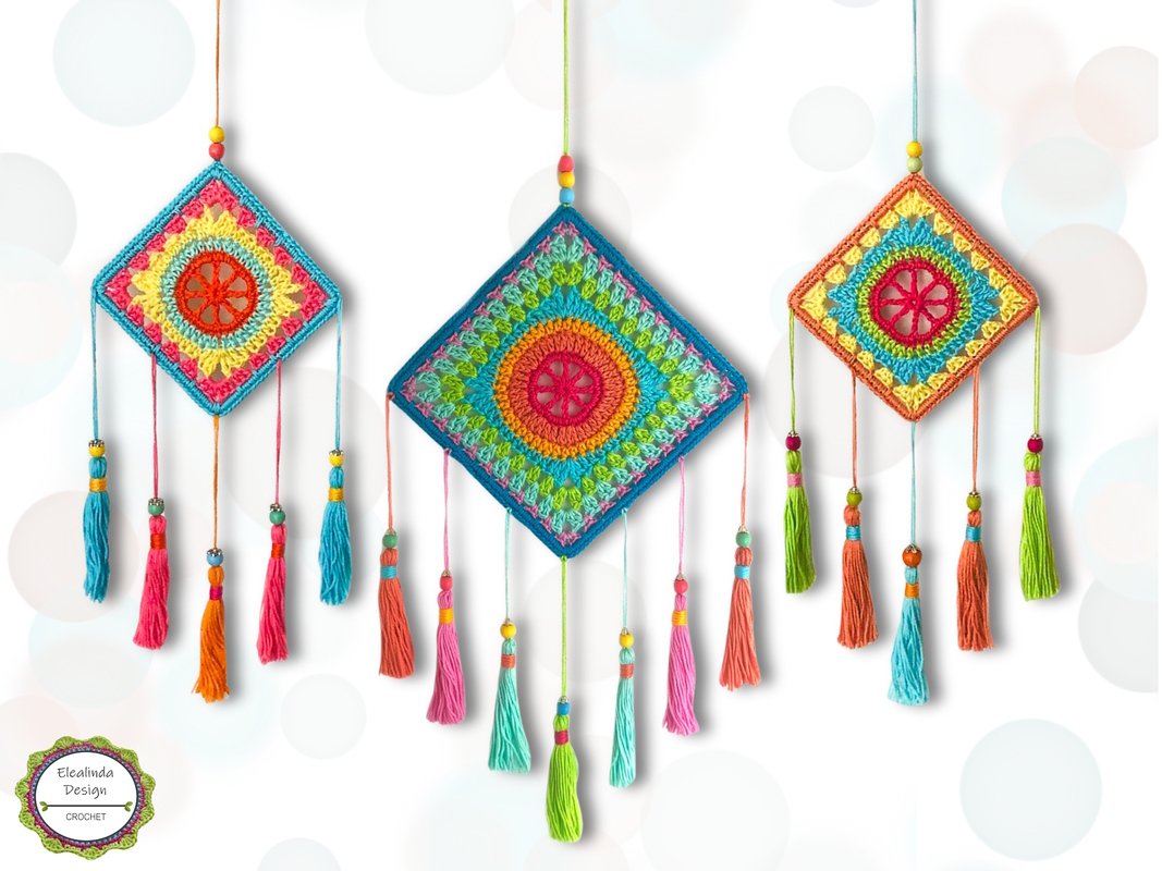 Crochet Pattern Square Dreamcatcher, Boho Living Decor, Wall Hanging Decoration, Dream Catcher in 2 Sizes + 2 Designs