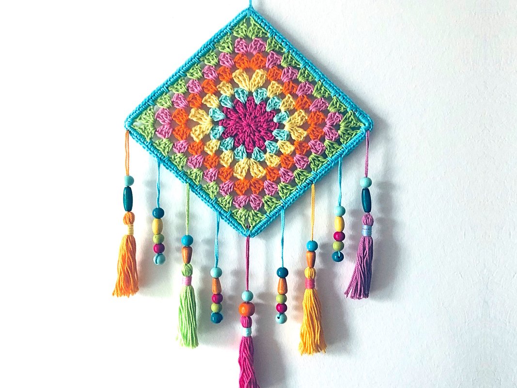 Crochet yourself colorful dreamcatchers for good dreams - if in the bedroom and children's room, but also just as a great decoration / wall decor for kitchen, living room, garden. Here in an unusual square shape and in trendy colorful boho style!