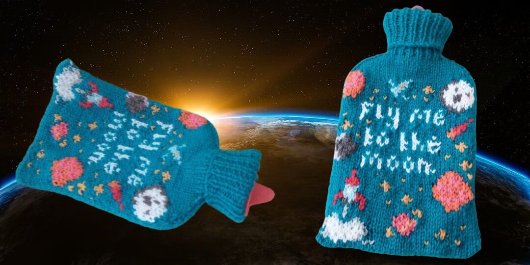 This product is the knitting pattern only to make your own Fly Me to The Moon Hot Water Bottle Cover.