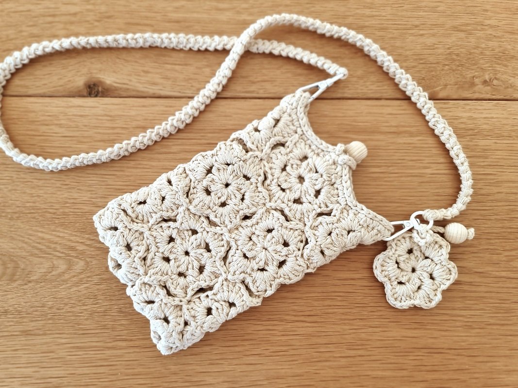 Individual flower motif measures approx. 6 cm/inches indiameter after blocking.
