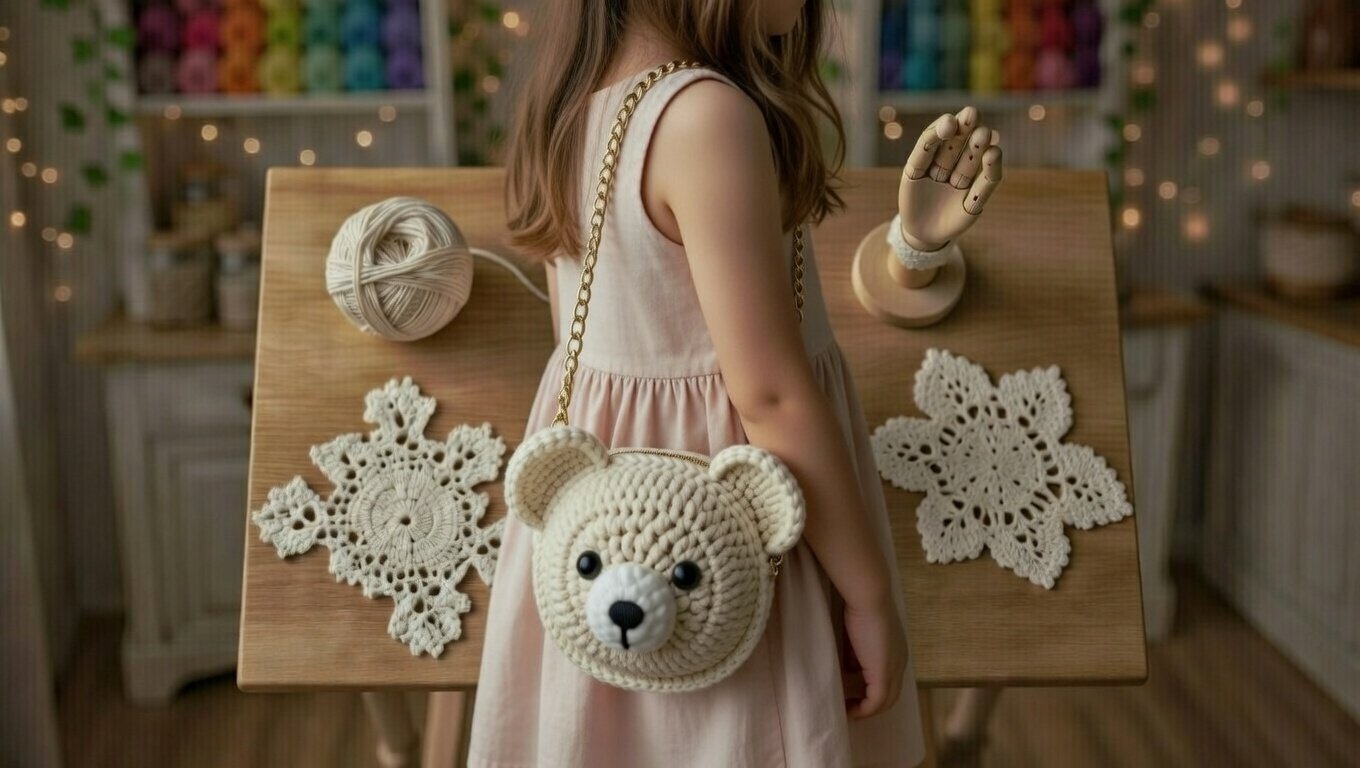 This pattern guides you step by step through making a cute bear-shaped crochet bag, perfect for kids, gifts, or handmade accessories.