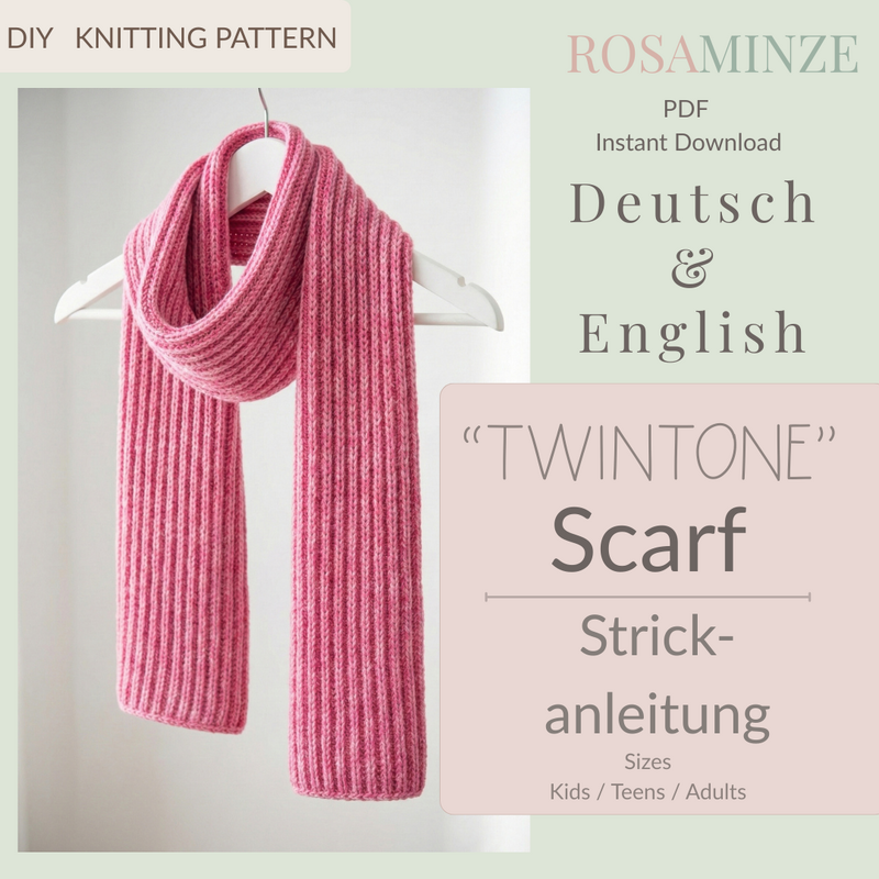 The scarf is worked flat in rows with a continuous stitch pattern running through the entire length. The pattern guides you step by step through the two-color brioche technique and is ideal for knitters who would like to explore this technique in a manageable project.