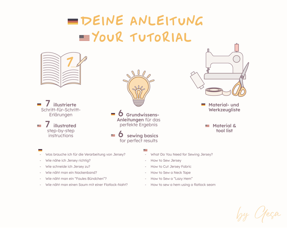 Difficulty is medium. The instructions are very detailed, so confident beginners can absolutely sew it — the neckline can be the most fiddly part when working with jersey, but with a bit of patience you’ll get a really clean result.