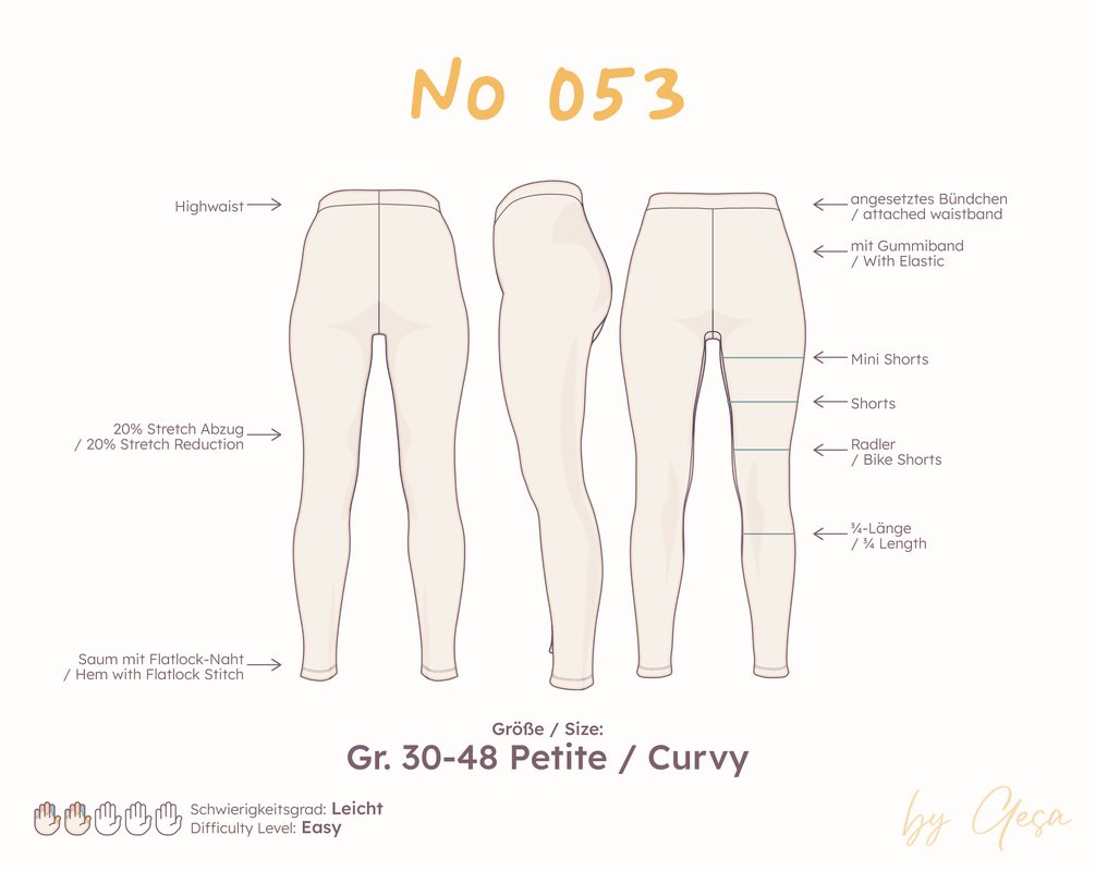 This pattern is intentionally straightforward: a classic high-waist leggings with attached waistband, perfect for everyday wear and super comfortable. Thanks to the uncomplicated construction, it’s also ideal for anyone just getting started with sewing jersey fabrics. And once you’ve made one, you’ll probably want a few more – because you can never have too many leggings.
