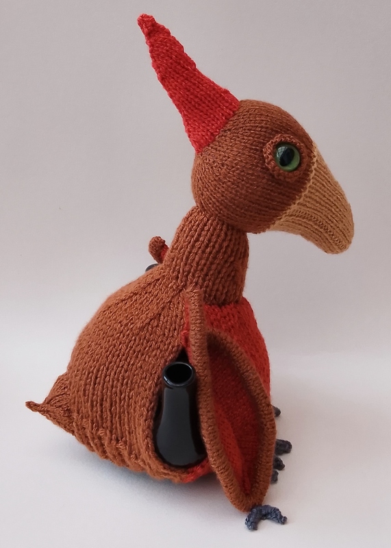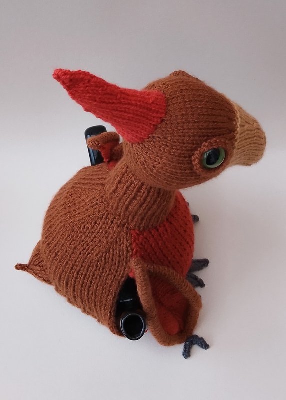 If you’ve ever wanted a prehistoric guardian for your teapot, this Pterodactyl Tea Cosy is ready to swoop in! Knitted flat on two needles and sewn together, the cosy is wonderfully fun to make. The body forms the main cosy, while the head — complete with its Tomato‑red Pteranodon‑style crest — is knitted separately so it can perch proudly on top.