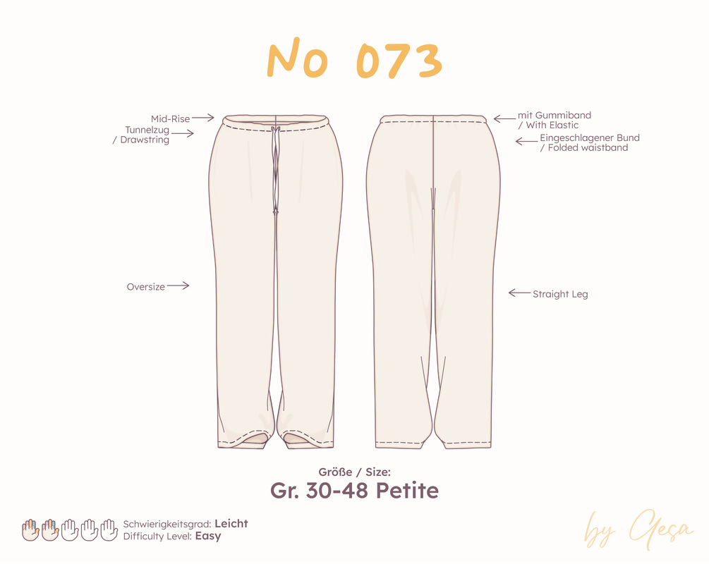 And the sewing stays simple: you can sew the pants on a regular sewing machine. Use a stretch stitch for the seams. Use a simple straight stitch for the hems and for topstitching along the elastic.