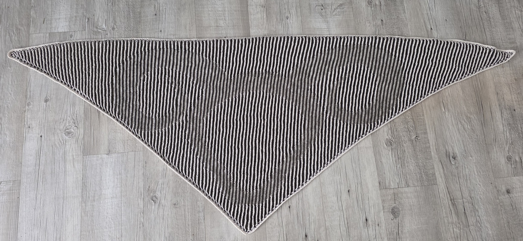 The finished shawl measures approximately 175 cm (width) x 78 cm (depth) in my version.