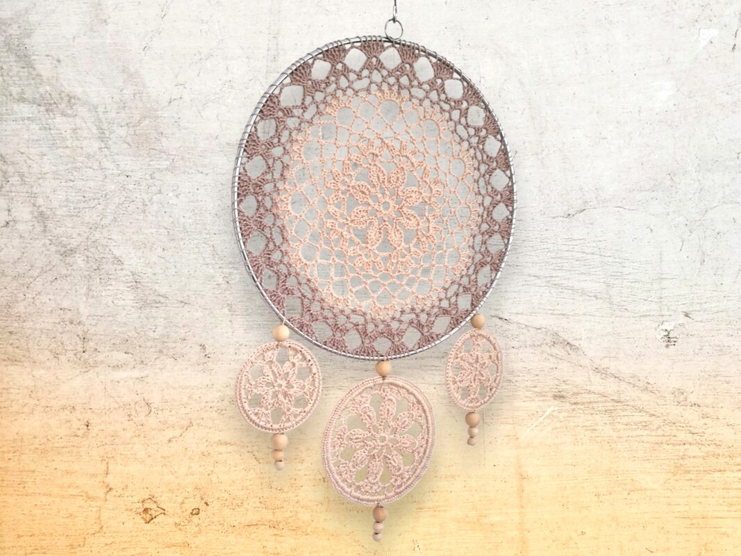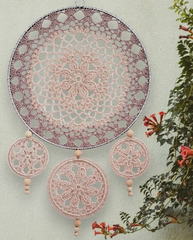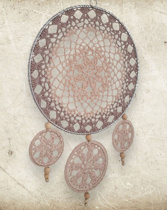 Häkelanleitung Traumfänger oder Mandalas, ganz wie es gefällt. Kombiniere und dekoriere die gehäkelten Teile nach deinen persönlichen Wünschen. Dazu können auch Federn, Holzkugeln, Perlen etc. verwendet werden.