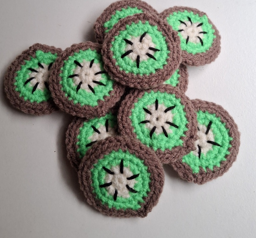 With this step by step crochet pattern you can easily crochet a Kiwi, half a Kiwi and Slices.