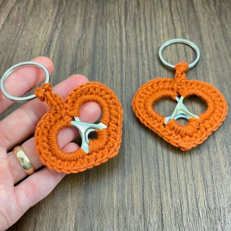 Create unique and colorful heart-shaped keychains using this creative crochet pattern that combines yarn with real aluminum can pull tabs. This design transforms simple materials into charming handmade accessories perfect for everyday use or thoughtful gifts.