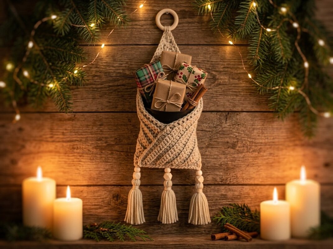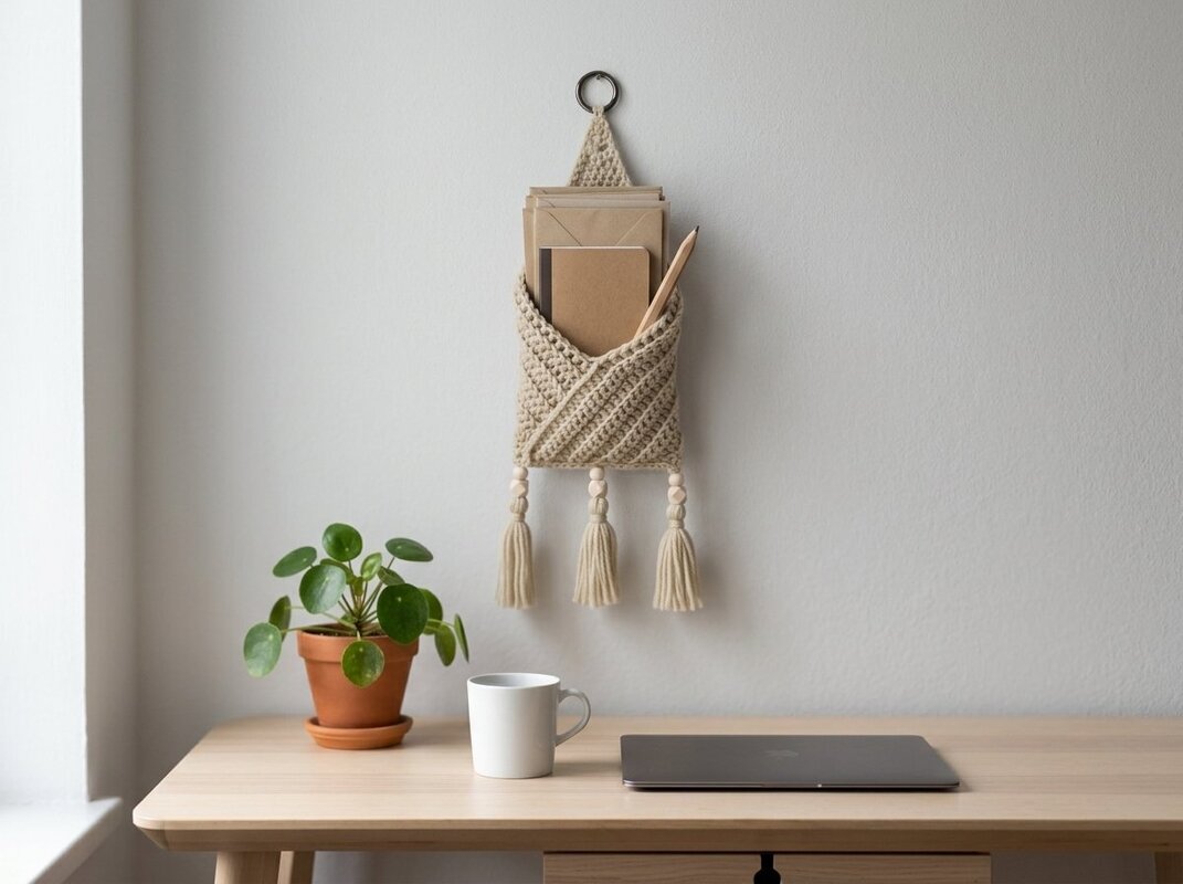The combination of structured crochet texture, warm natural tones and playful tassels makes this piece a real eye-catcher – perfect for the living room, bedroom or hallway. Even in a motorhome, this decorative pocket brings order with style.