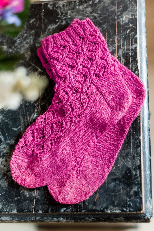Summer socks that invite you to dream. Perfect for warm days when you don’t want to go barefoot. The pattern is airy and feminine. The plant fibers of the yarn ensure a pleasantly dry feel and a beautiful sheen.