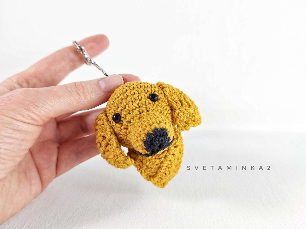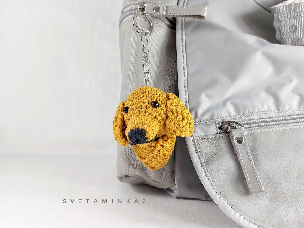 This pattern helps you create a small amigurumi keychain of a Golden Retriever head — soft floppy ears, kind expression, and even a little neck. It works up fast and makes a perfect gift for dog lovers. Original design - svetaminka2.