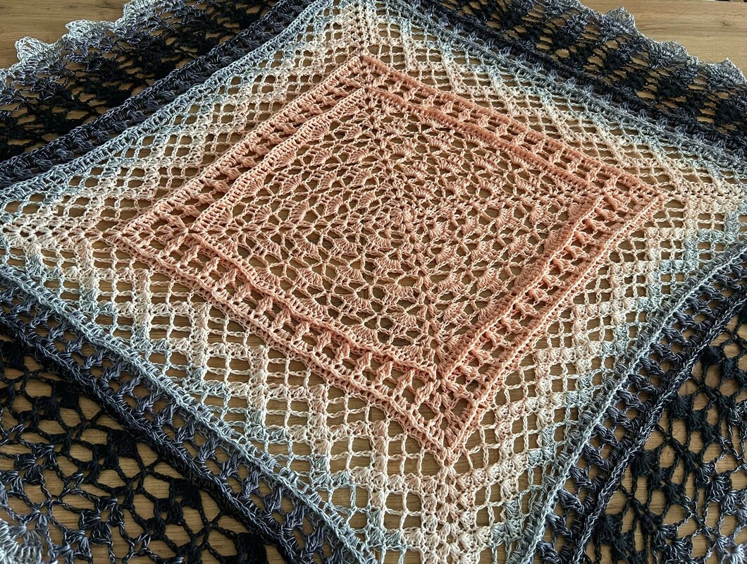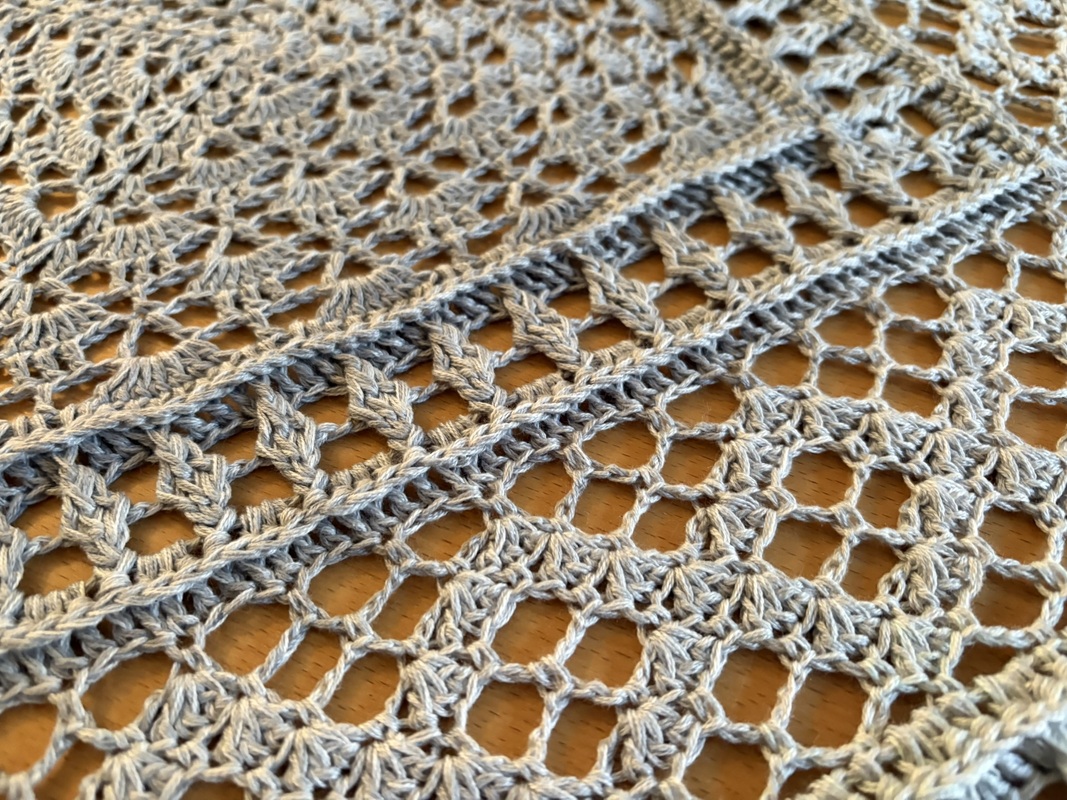 The tablecloth can be crocheted in three different versions and sizes. Please note that if you use a different wool, a different needle size or generally crochet looser/tighter, the size may vary.