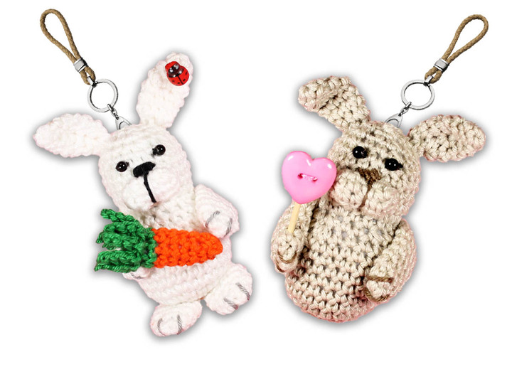 Die umfangreiche, reichlich bebilderte PDF-Häkelanleitung zum Häkeln von Schlüsselanhänger (Taschenbäumler) "Hase mit Karotte" zum Dekorieren des Hauses oder als Mitbringsel für die Freunde. Hase kann man auch als Schlüsselanhänger oder Anhänger für die Tasche benutzen. In der Anleitung werden zwei Varianten beschrieben (mit Füßen und Ohne).