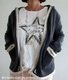 This sweater will be an eye catcher. She has a big hood, roomy pockets with a slanted, and small great embroidery ib the front, on the hood and behind the back.