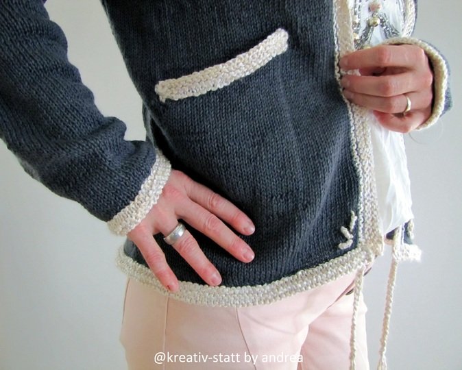 They can be worn as cardigan or as a transition jacket - but then you should knit a number greater.