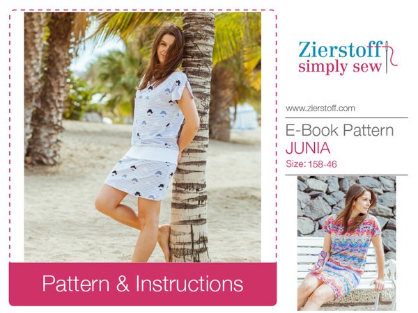 eBook and pattern for JUNIAs dress pattern, sizes 158 – women´s 46 / Kids M – women´s L/XL.