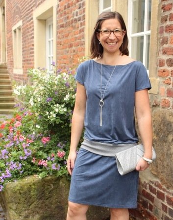 Preferably sew this dress from stretchy fabrics. You can use cuff fabric for the waistband but you can also use normal jersey or viscous jersey. This dress is also ideal for pregnant women because the waistband is nice and stretchy!