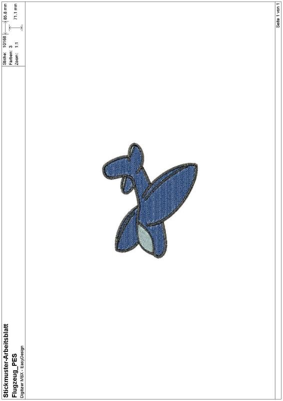Stickdatei "Flugzeug" Pes Format (Deco, Brother, Babylock)