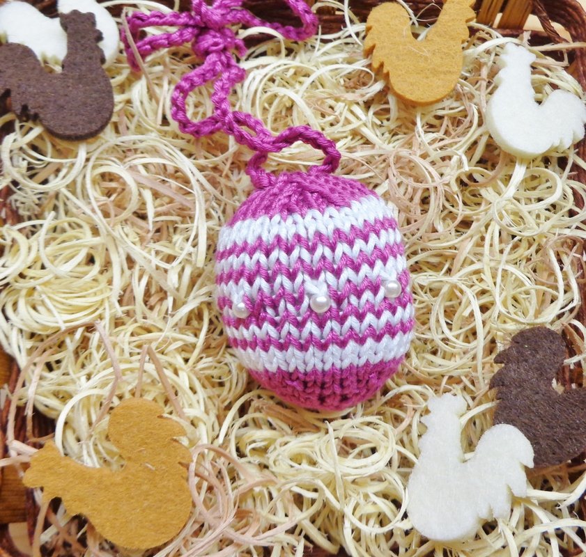 With a little practice, a decorative egg is knitted and finished in less than an hour!