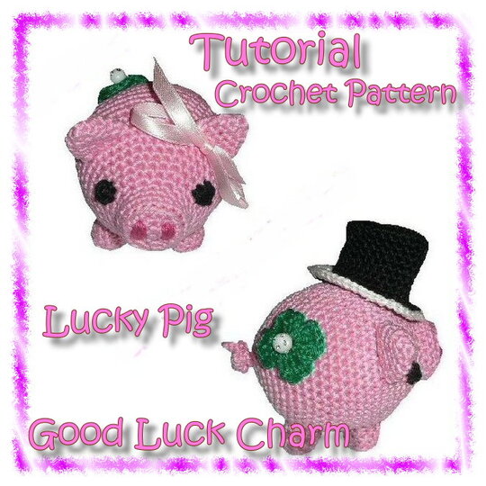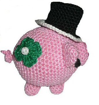 Lucky pig Emilia or Emil, just as you like. This pattern deals with the pig that has the shamrock on its behind and the suiting hat, if you want to crochet Emil. Actually, you can beautify the piglet how you like it, down to your whim. Either Emilia gets another flower, pearl or she gets a bow around her belly or something else… And Emil can try a hat on if you make him one, so everyone knows he is a boy.