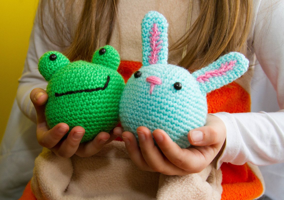 Will be knitted: panda, hare, frog, pig and bear