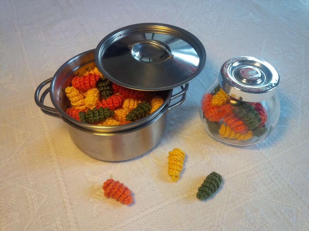 Kinder wollen beim Spielen Gerichte kochen, die sie sonst auch kennen. Daher habe ich die Vorlagen so gewählt, dass man ganze Gerichte hat, bzw. sie mit anderen ergänzen kann.