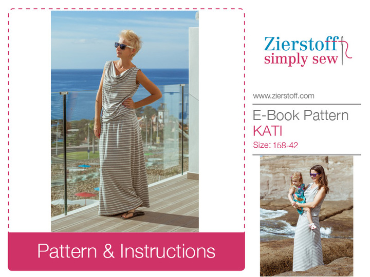 eBook and pattern for KATIs waterfall neckline dress / shirt pattern, sizes 158 – women´s 42 / Kids M – women´s M/L.