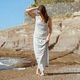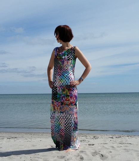 Material consumption 1,40 meters / 55” fabric bolt width for the dress. If you are planning to sew the shirt then chose your desired length because both parts will fit onto the 55″ fabric bolt width. (Simply measure the length on yourself.)