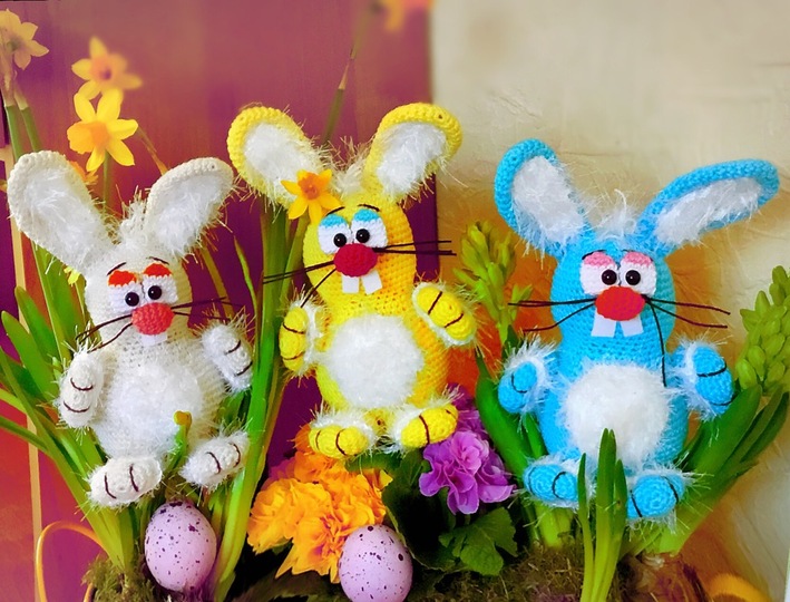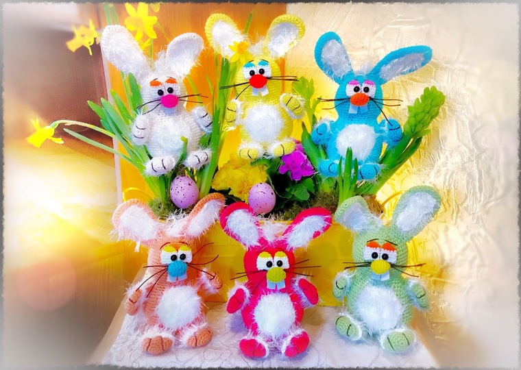 Crochet Pattern “Fluffy bunnies to stick or sit„ from Diana´s kleiner Häkelshop