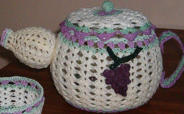 This listing is for a pdf crochet pattern to make this pretty Tea set pictured, not the finished items.