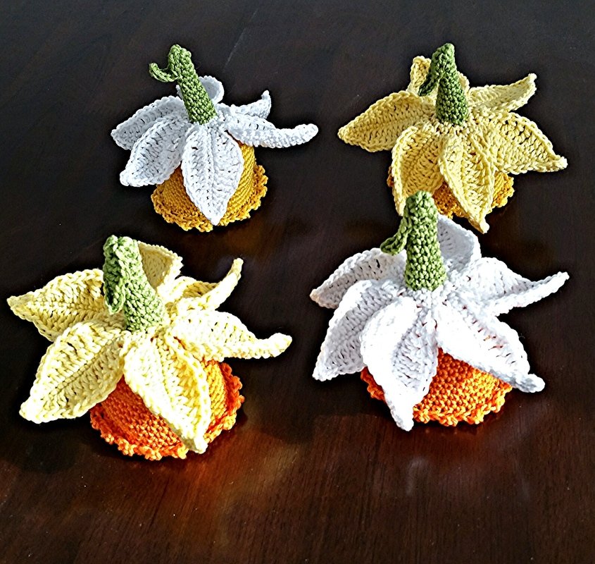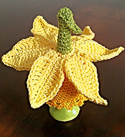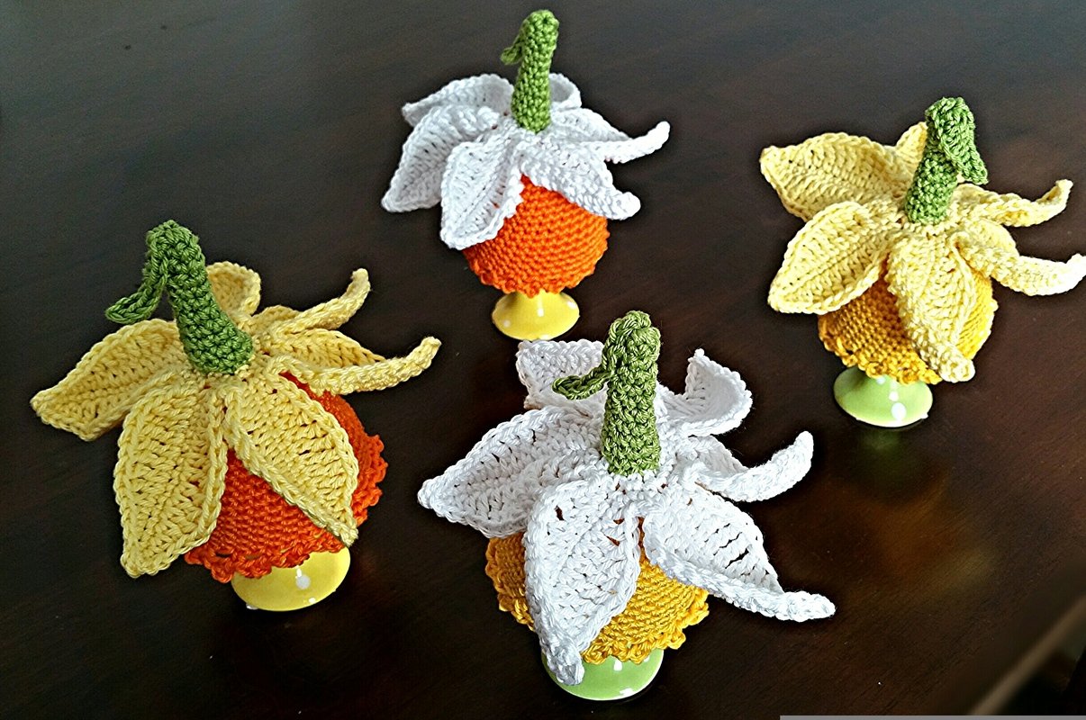 Brighten up your breakfast table with a set of these sweet little egg cozies "Daffodil".