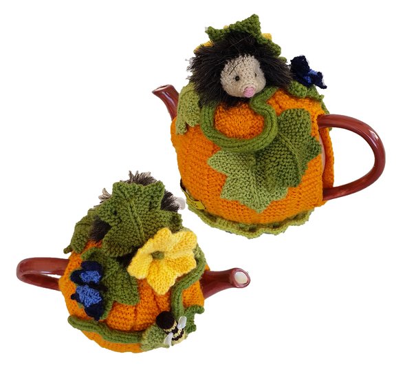 Quick & easy to make this 4-6-cup Tea Pot Cosy, called Pumpkin Hedgehog Tea Cosy
