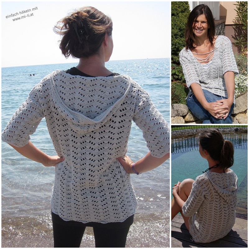 Gr. S, M, L, XL - es ist auch erklärt, wie das Teil noch kleiner oder größer gehäkelt werden kann.