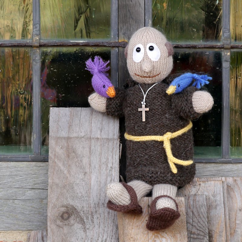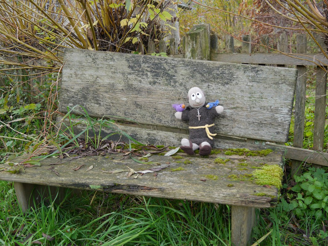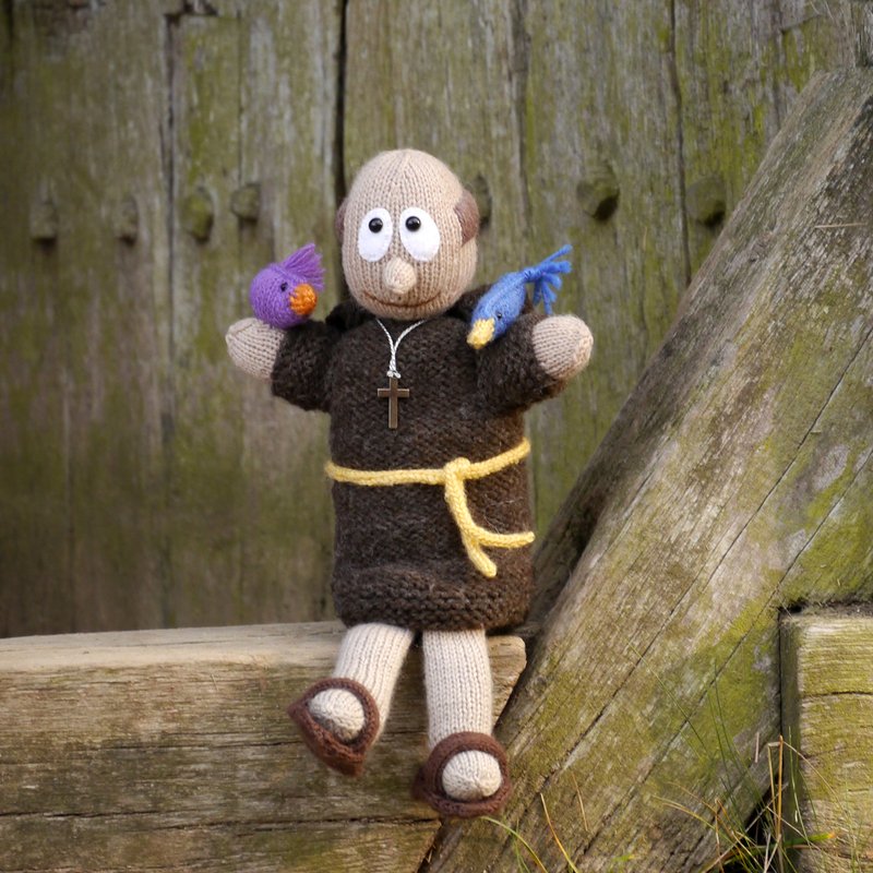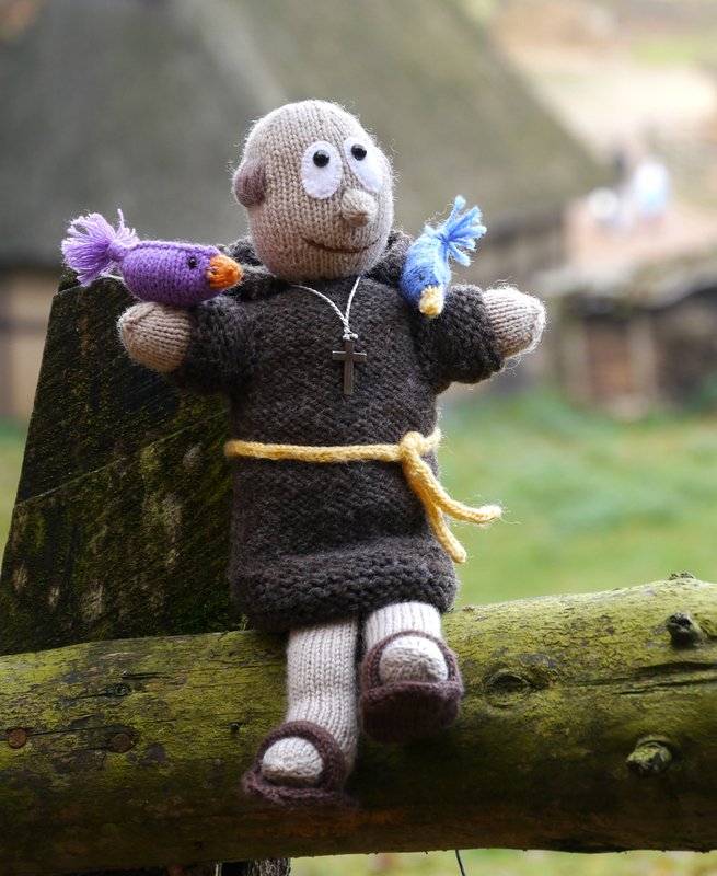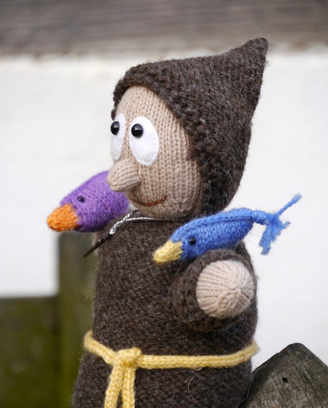 way into my room the moment I finished the monk. My St. Francis is a knitted puppet you can play with, for example for telling children the wonderful story of his preaching to the birds. And when you stop playing him, there is an inlay for his body which enables him to sit upright to watch over your family!