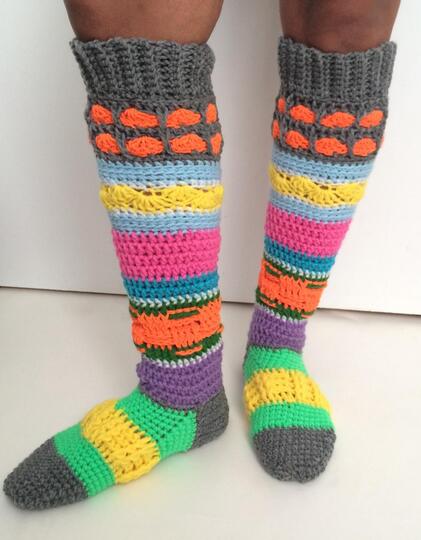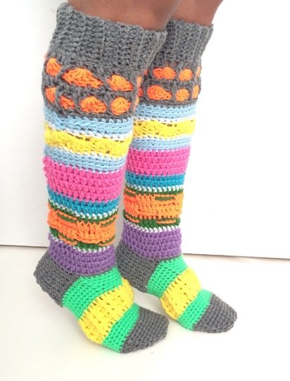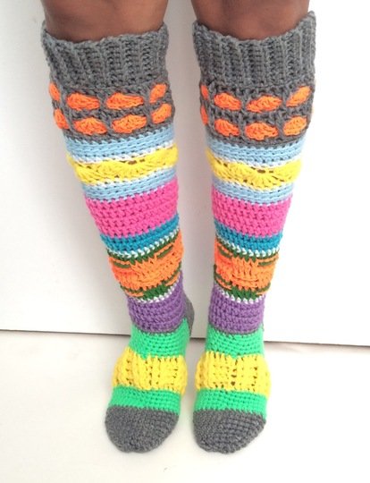 Crochet Super Colourful Knee High Socks Pattern (The Original Colourful Socks)