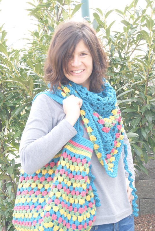 Du häkelst das Dreieckstuch in Reihen und die Tasche in Runden, zuerst mit Ecken und später ohne, damit es sich hochwölbt.