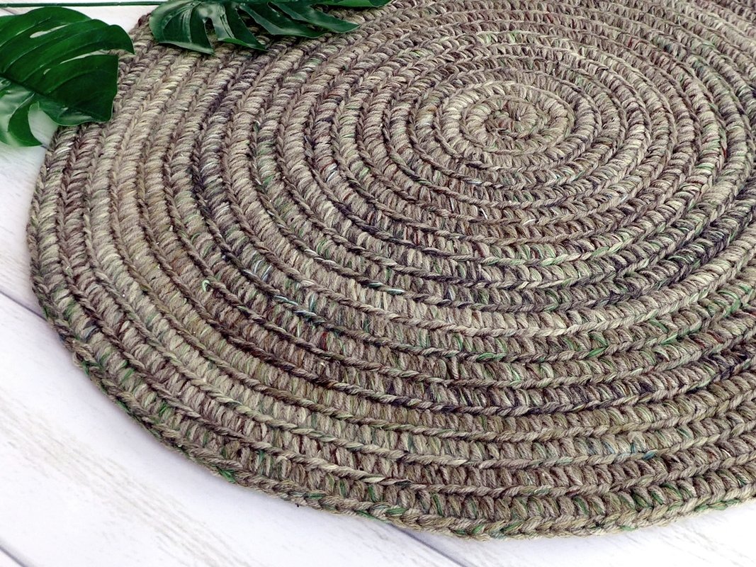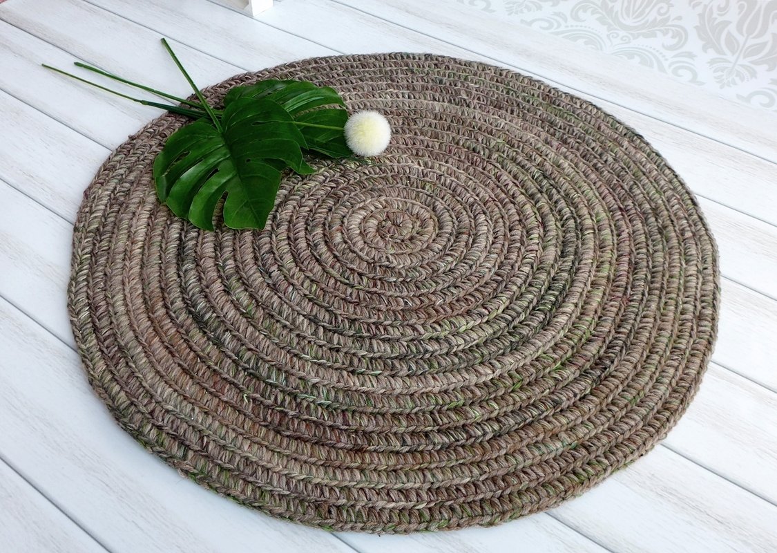 Ihr erhaltet eine 13-seitige detaillierte Beschreibung mit Schritt-für-Schritt-Fotos zur Herstellung eines schönen individuellen und rustikalen Teppichs. Er ist in der Größe variabel, das heißt, man kann ihn so groß machen, wie man möchte und in jeder beliebigen Größe beenden. Mein hier gezeigter hat einen Durchmesser von 80 cm. Als Materialien kann man ganze Wollknäule in verschiedenen Qualitäten und auch Wollreste verwenden. Mir gefällt es immer gut, harmonierende Grundfarben (preiswertes Acrylgarn) mit bunten Farbverlaufsgarnen (z. B. Sockenwolle) zu kombinieren. Aber das ist Geschmackssache - Ihr entscheidet, was Euch gefällt. Wir arbeiten mehrfädig, so dass schnell vorankommen und sich beim Häkeln das individuelle Farbspiel von selbst entwickelt.