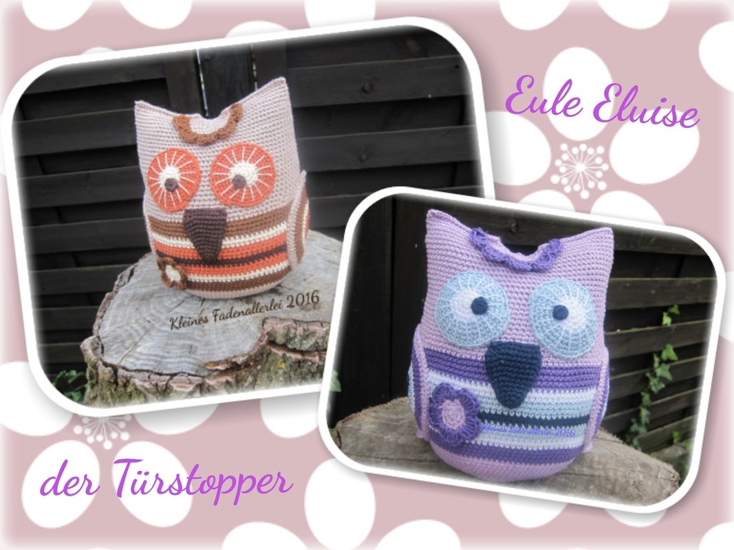 Dieser dekorative Türstopper könnte schon bald eure Türen halten. Eule Eluise ist mit Baumwollgarn (LL125m ~ 50g) und Nadelstärke 2mm gehäkelt. Sie hat eine Größe von etwa 20cm und ein Gewicht von 1300g. Dieses kann jedoch je nach Garn, Nadelstärke und Festigkeit variieren. Enthalten sind Eule Eluise, die Dekoblume und eine reichlich bebilderte Schritt für Schritt Anleitung zum Befüllen des Türstoppers mit Sand.