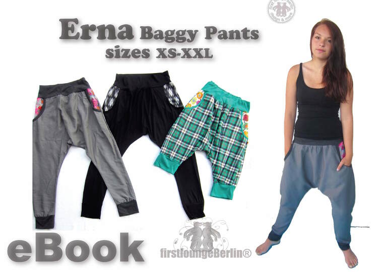 eBook sewing manual with cut pattern for hip sitting baggy trousers with