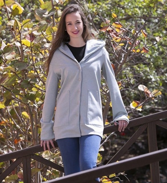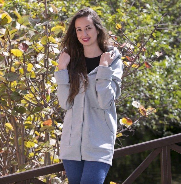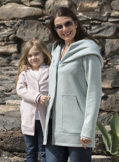 You can sew the jacket with either a simple or lined hood. You can vary the sleeve processing, too. You can sew normal sleeves or add thumbhole cuffs. You can see, looking at our pictures, that this pattern is a great project for mummy and daughter :-)