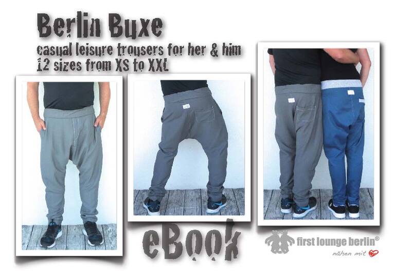 Ne super comfortable Buxe for almost every occasion. Whether jogging pants, yoga pants, slacks, trousers or simple skater Fläzhose cool and casual. The Berlin Buxe can be sewn quickly and easily from virtually all materials. Here also great men and women, the pants are not forgotten as in 6 leg lengths of 1.70 m to 1.95 m height was calculated.