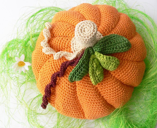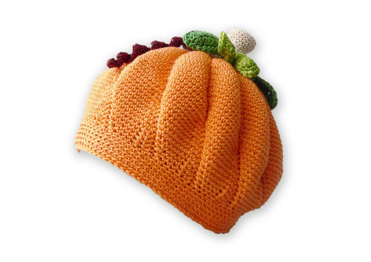 This PDF crochet tutorial consists of illustrated tutorial for crocheting a hat in the shape of a pumpkin with the leaves. The hat can be crocheted for both children and adults. The size is adjusted while crocheting the bottom of the hat (explained in the pattern).